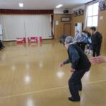この日のカーリンコンは、4チームに分かれての総当たり戦。初めてカーリンコンを体験する方も複数いらっしゃり、ディスクを投げる練習を行ってからゲームスタート。